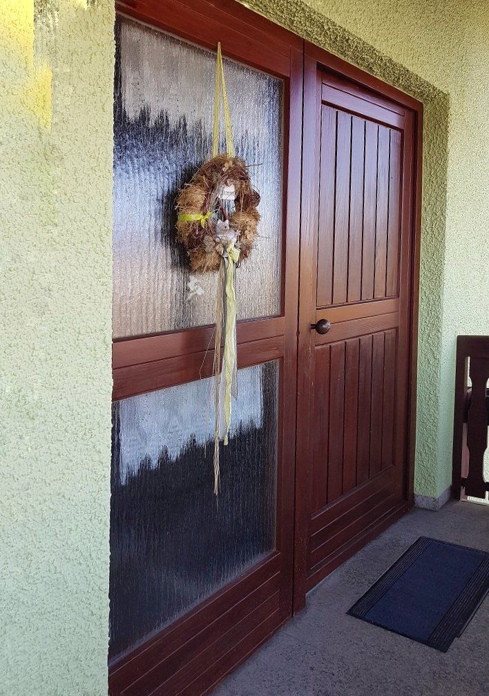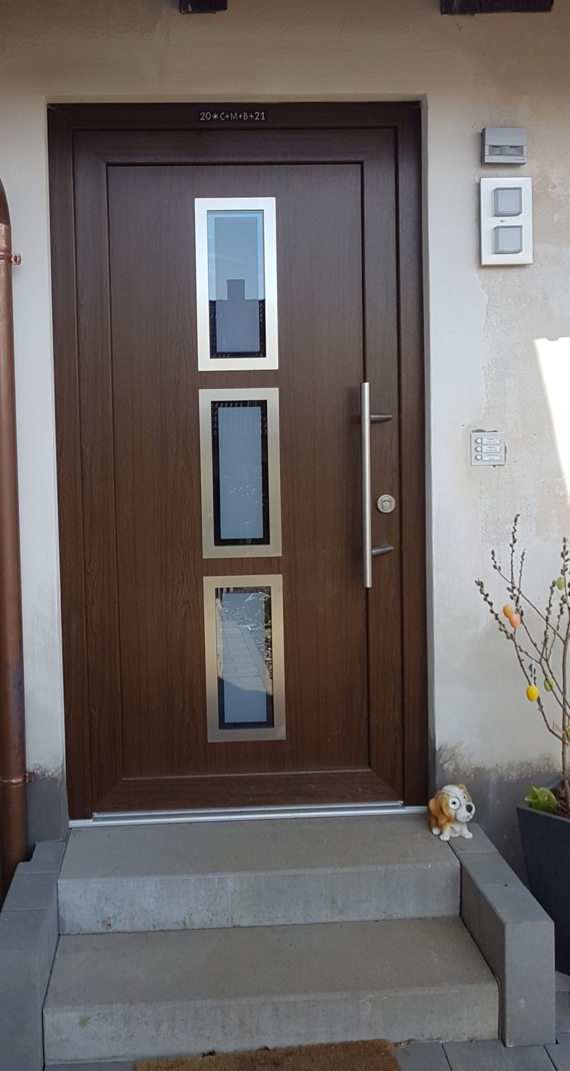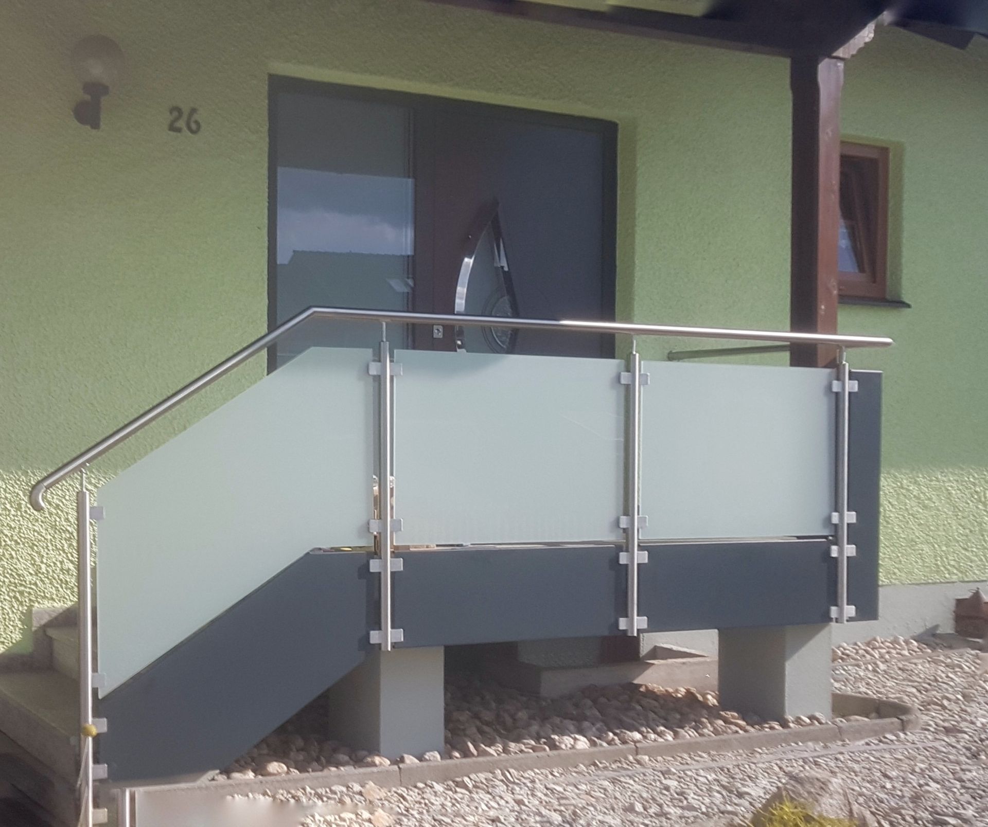 Die vorhandene Holzhaustüre ist in die Jahre gekommen und wurde durch ein moderneres Aluminiumelement ersetzt.