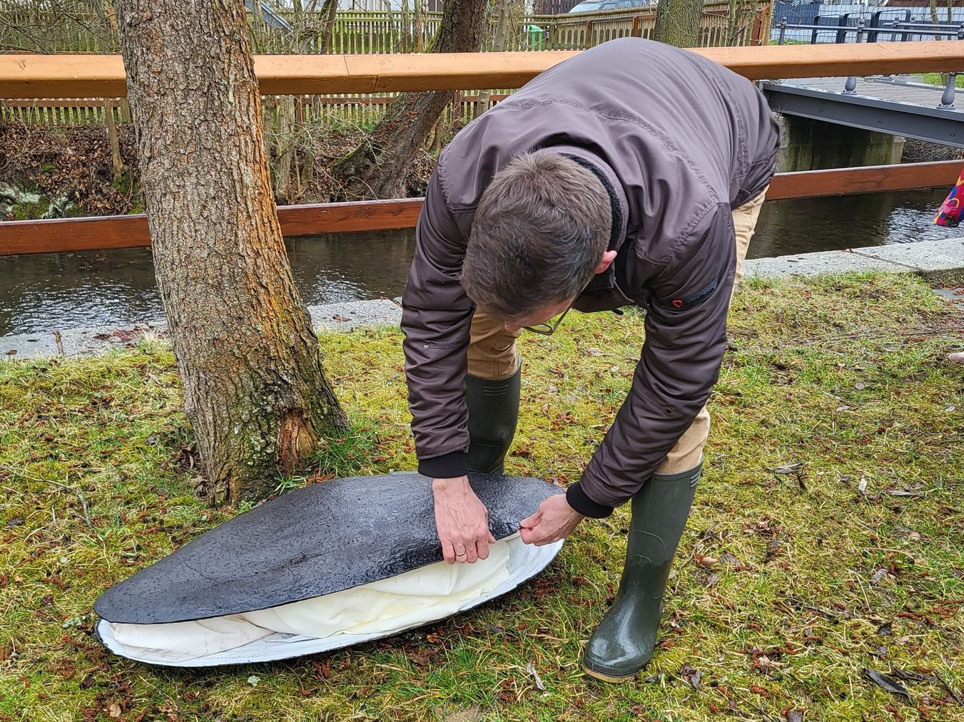 Bei einem Spaziergang am Perlenbach stellte ich etwas ungewöhnliches fest: Unter einem Steg ragte etwas Großes hervor. Tatsächlich, eine Riesenmuschel