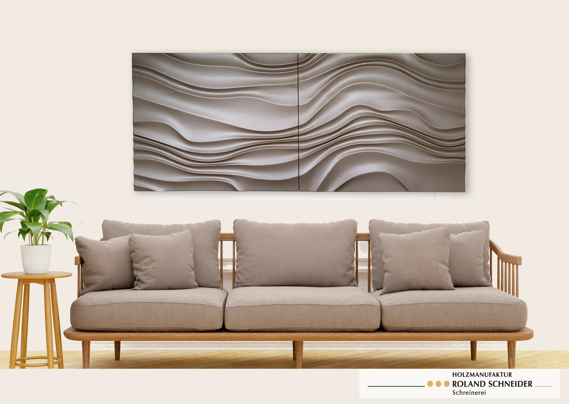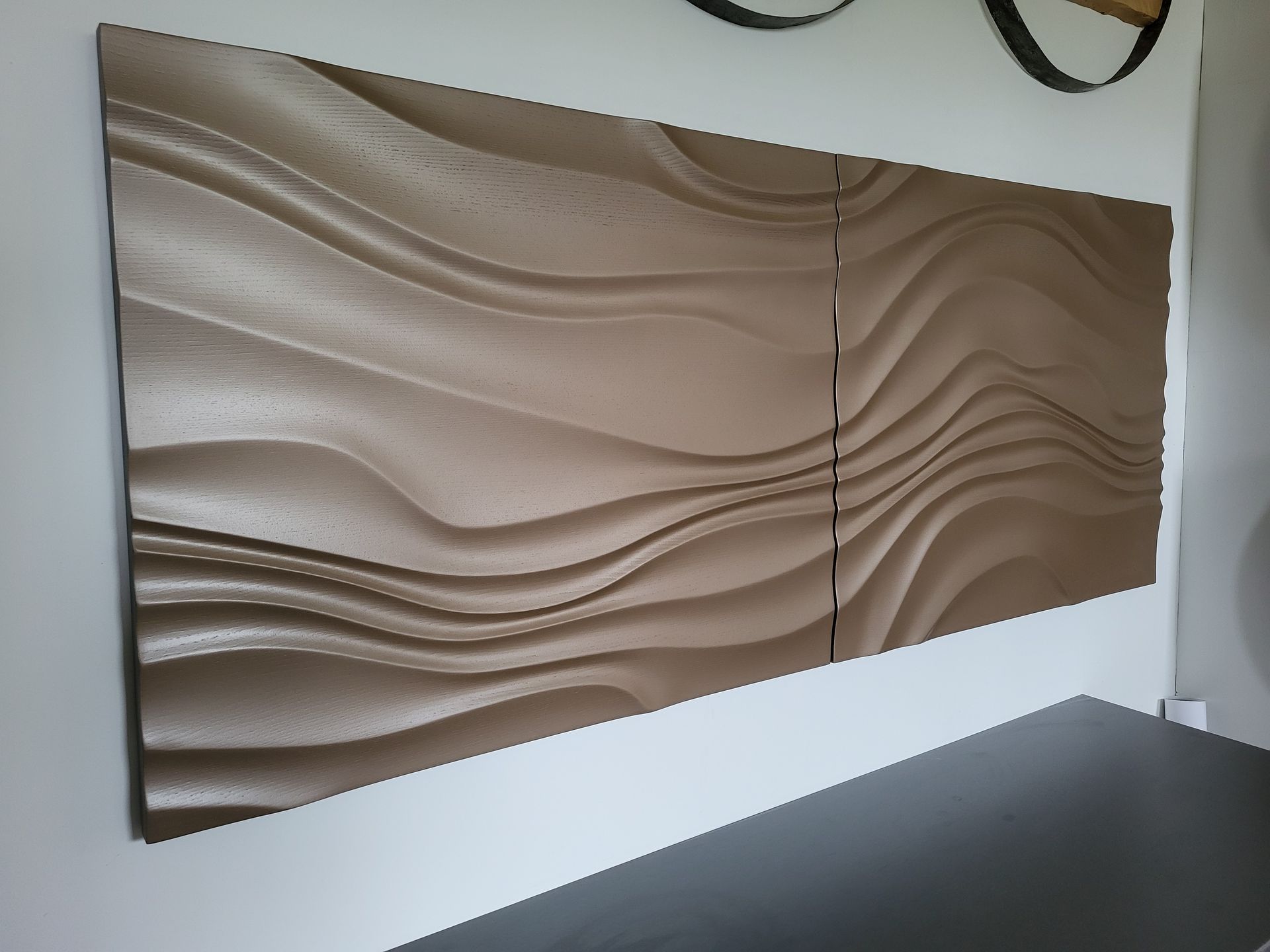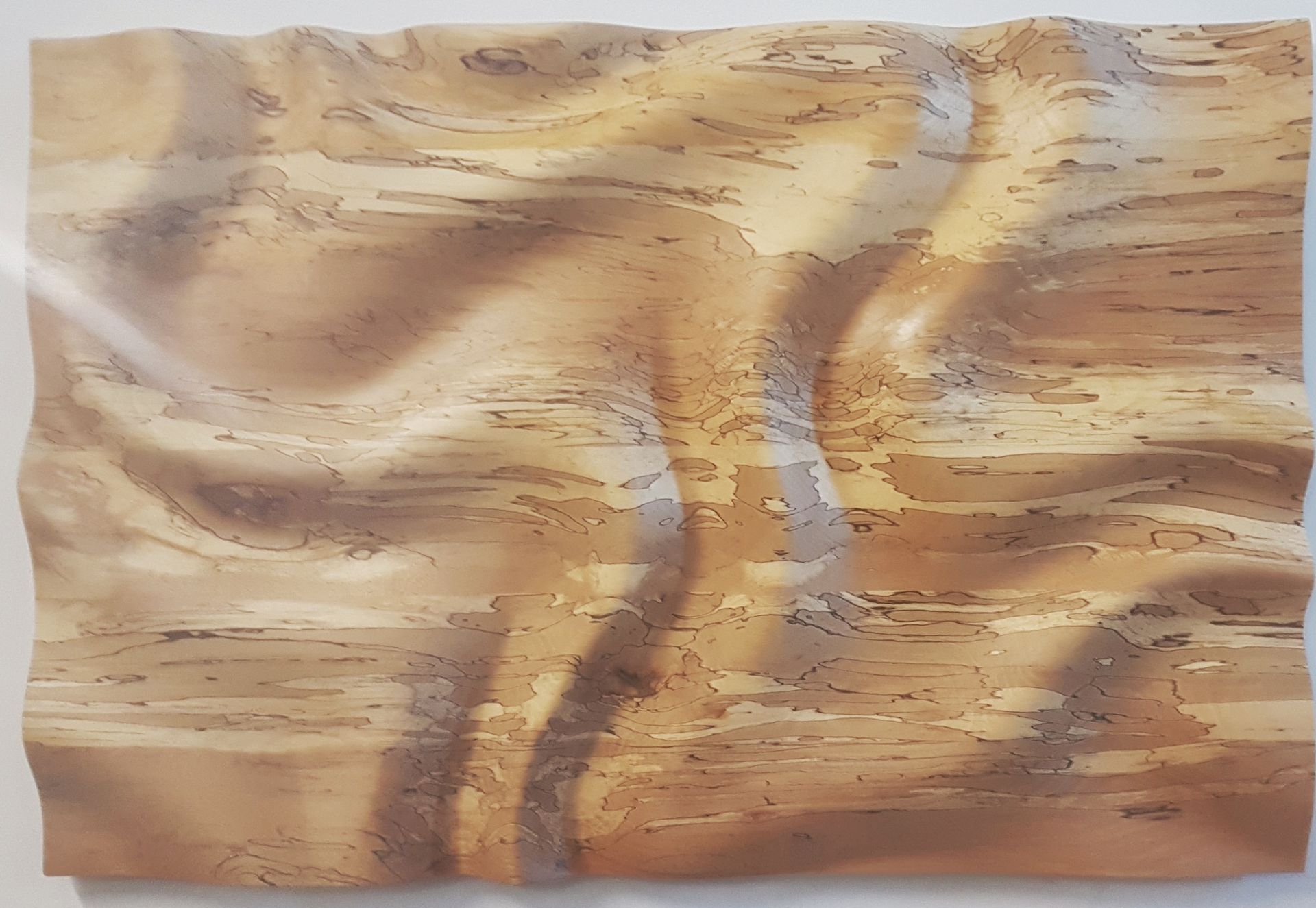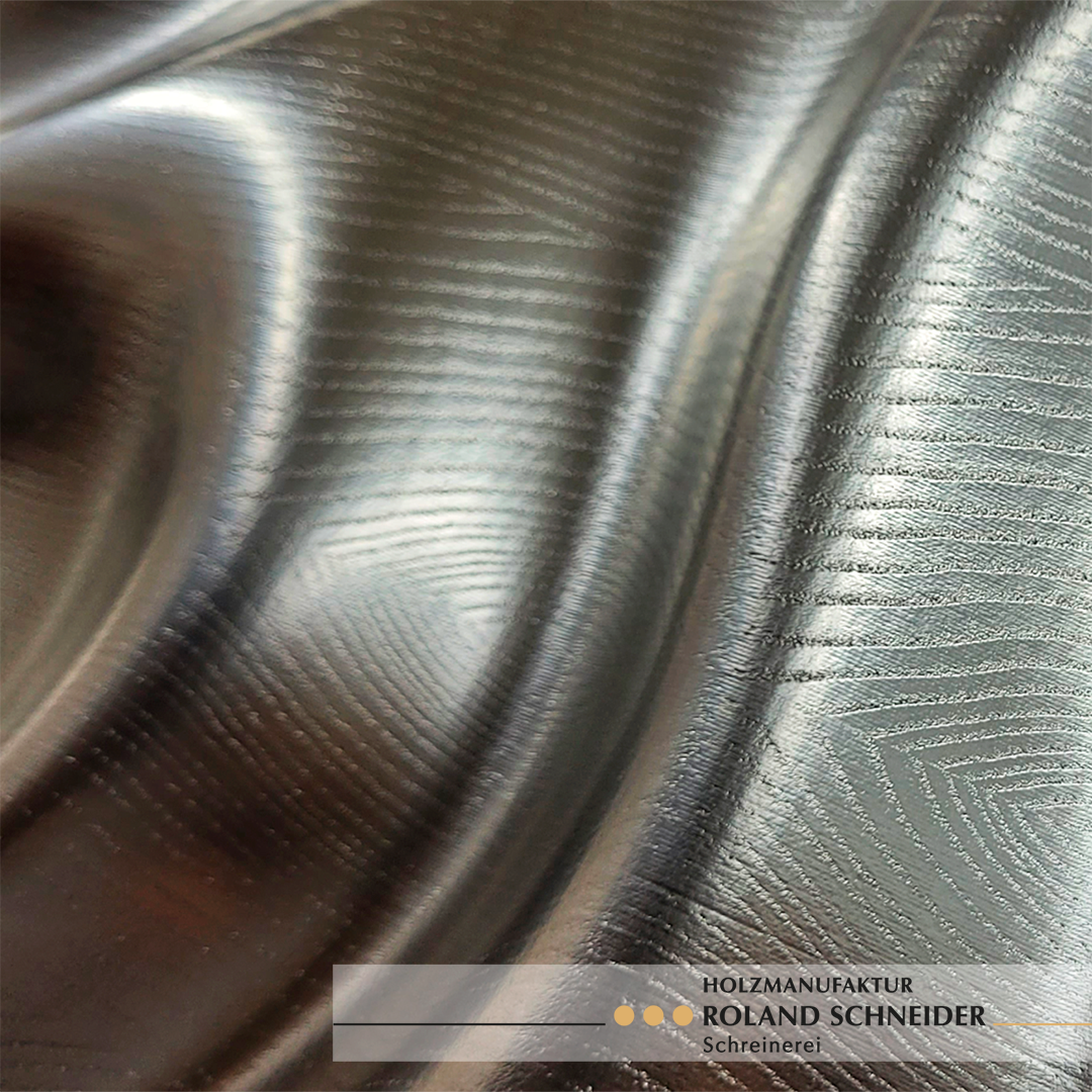 Esche-Massivholzplatte im Wassertropfendesign, Oberfläche in Metallic-Effektlack, Größe je Paneel ca. 98 x 58 x 4 cm
