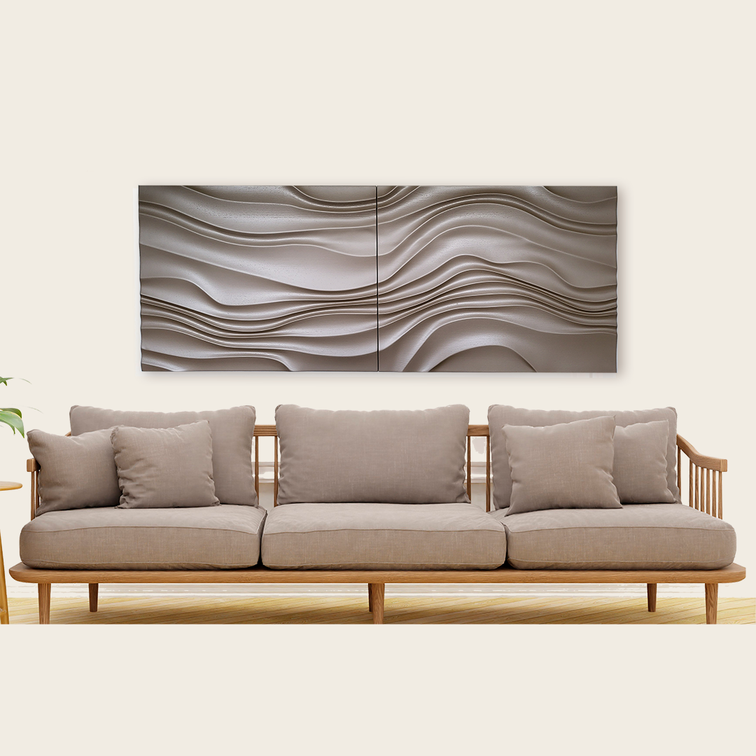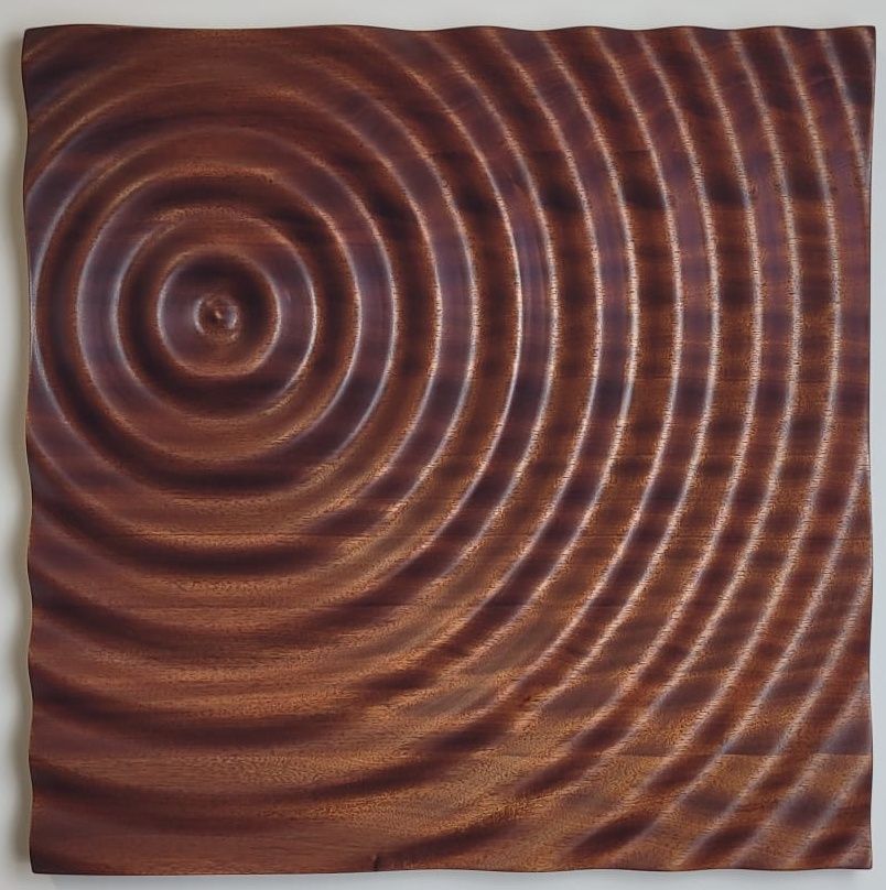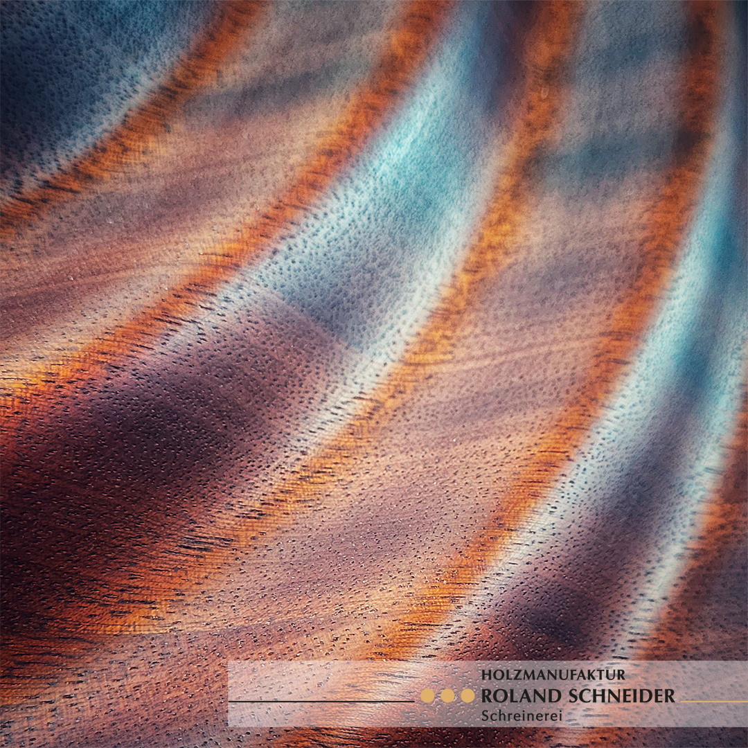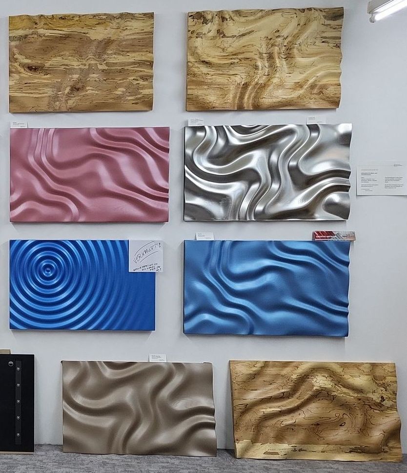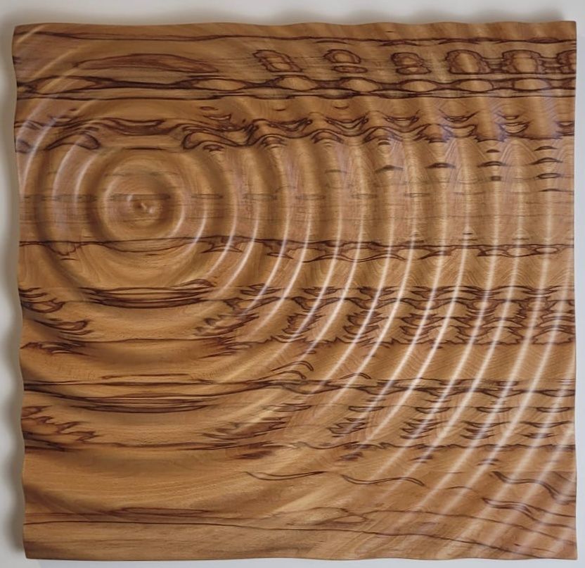 Esche-Massivholzplatte im Wassertropfendesign, Oberfläche in Metallic-Effektlack, Größe je Paneel ca. 98 x 58 x 4 cm