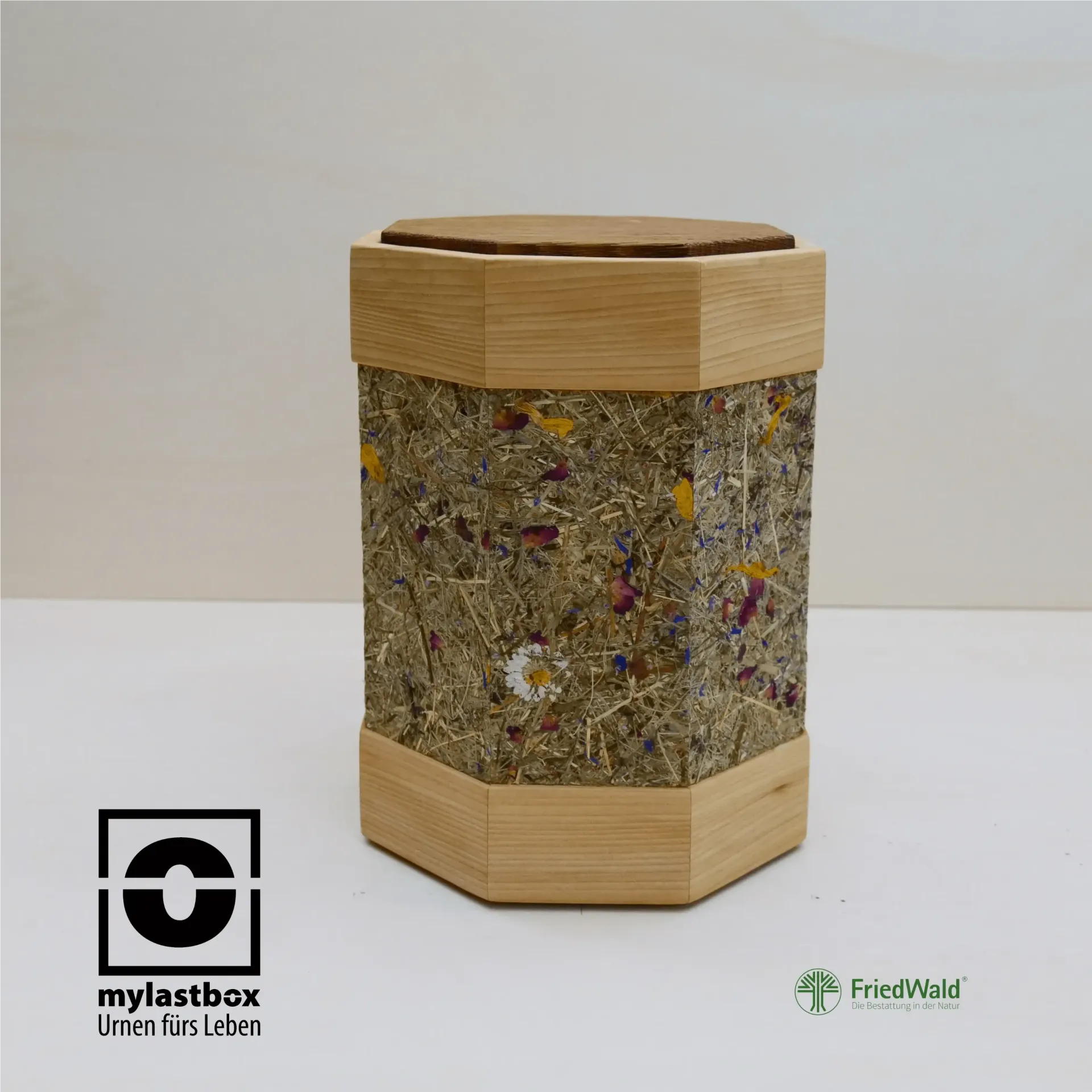 Sogar einzigartige Materialien wie Tiroler Bergwiesenheu und zarte Rosenblüten werden verwendet, um jeder Urne eine individuelle Note zu verleihen. Sie haben die Freiheit, selbst zu entscheiden, was Ihnen gefällt.
