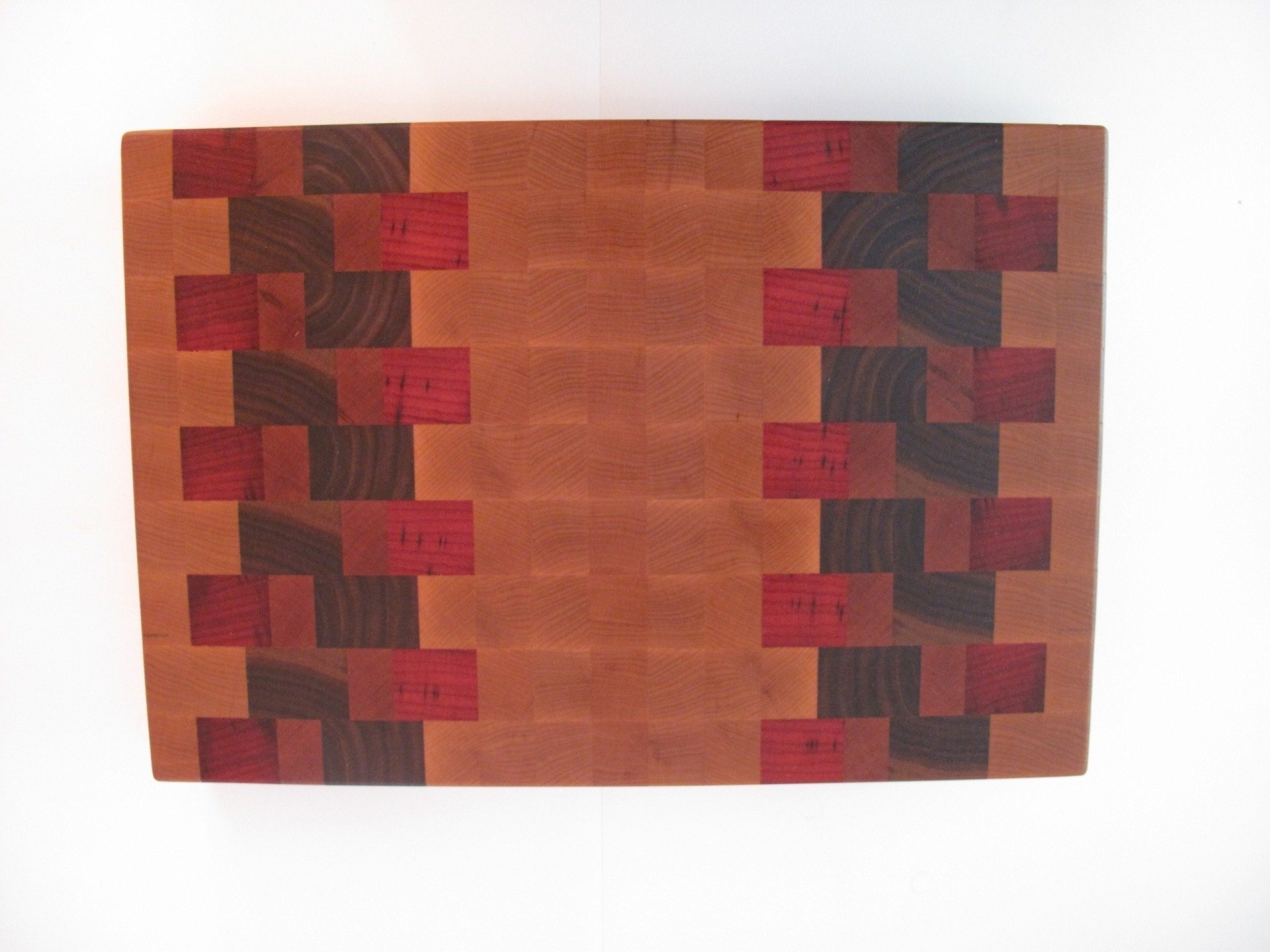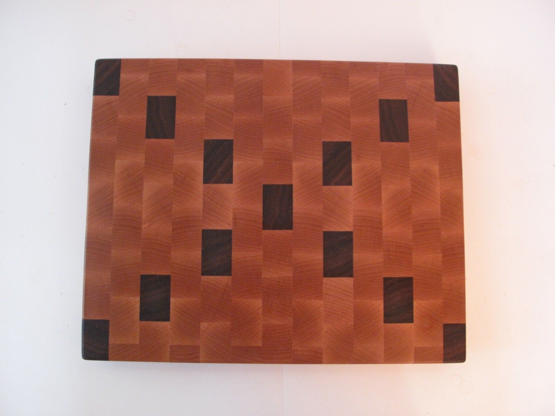in Stirnholzausführung. Das bedeutet, dass die Hölzer mit der Stirnfläche nach oben verleimt werden. Hierdurch wird die scharfe Klinge der Messer geschont. Auch bleibt die schöne Optik der Holzfläche länger erhalten.