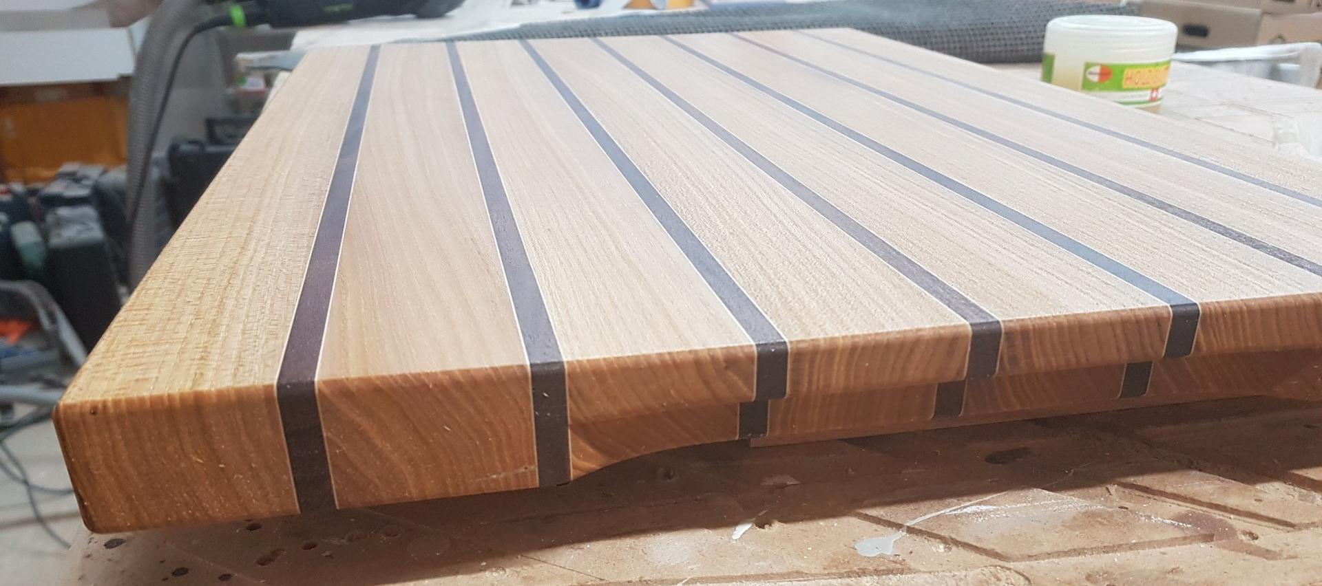Unaufdringlich, doch elegant durchlaufen Nussbaum und Ahorn das Brett.